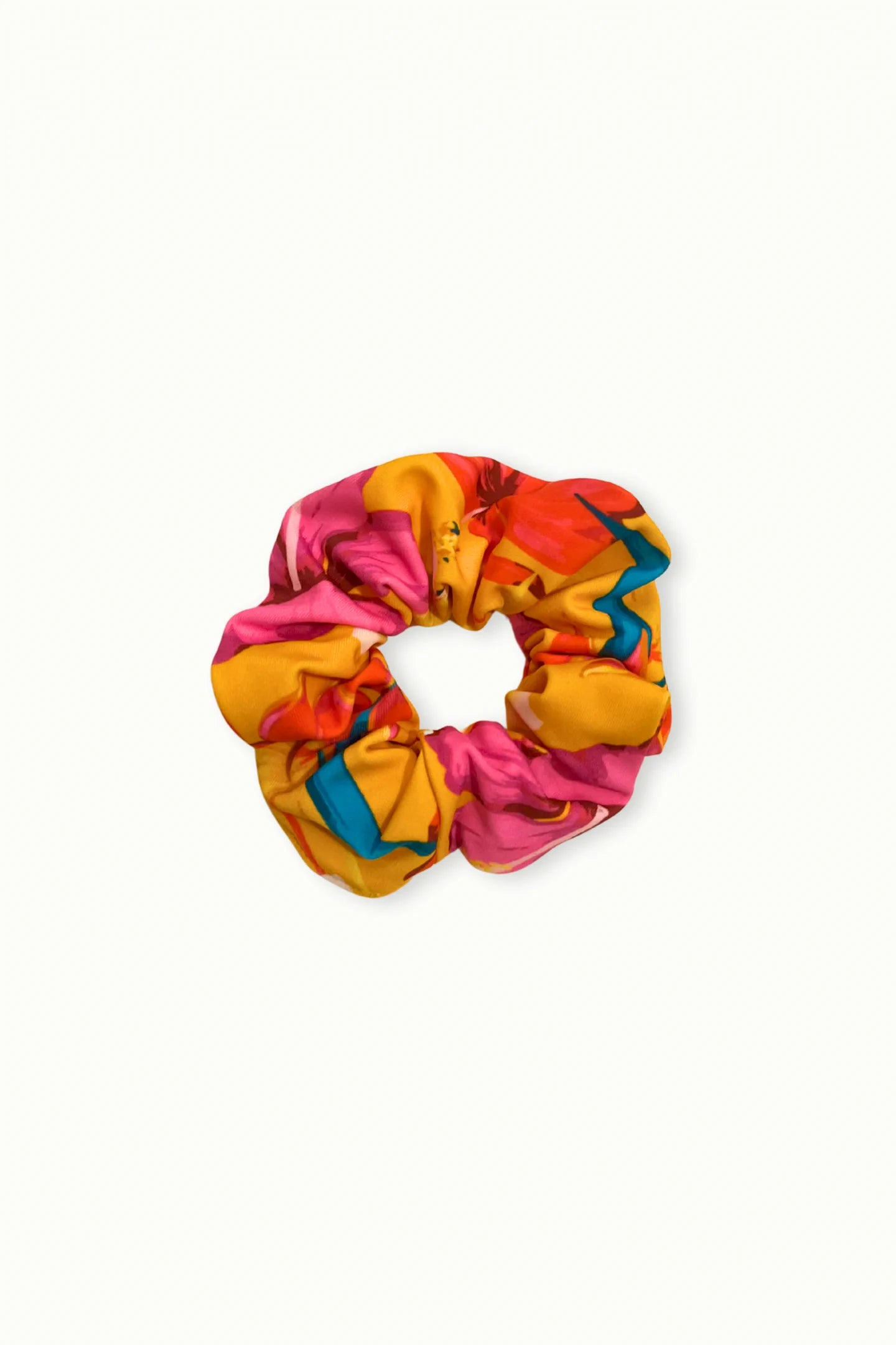 The Tropical Floral Scrunchie Tropical Orange is the perfect finishing touch, effortlessly coordinating with your printed bikini while keeping your hair secured with its soft, tropical fabric.